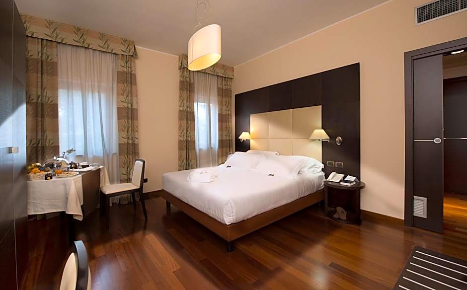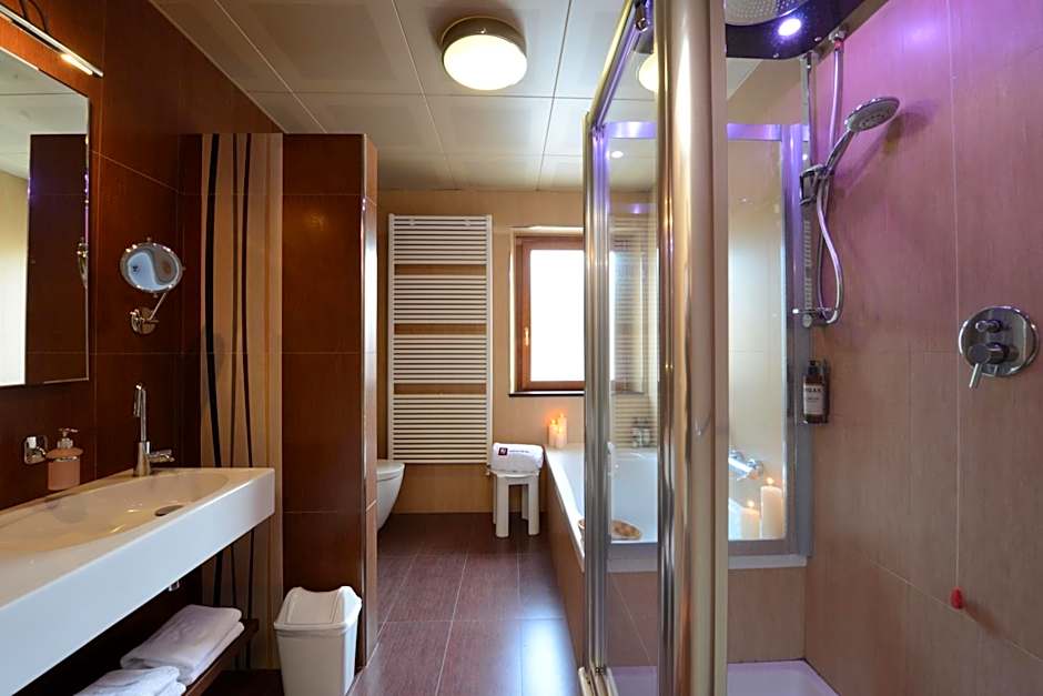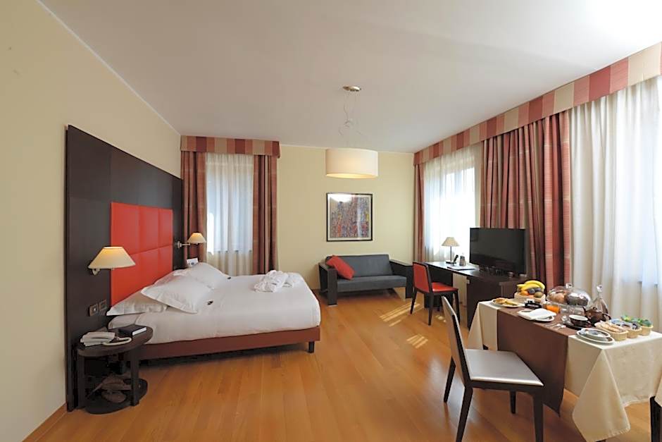 Features a small en suite spa with a Turkish bath and chromotherapy shower. It comes with a living area and a work desk, a flat-screen TV with Mediaset Premium channels, a mini-bar and a private bathroom with a hairdryer.